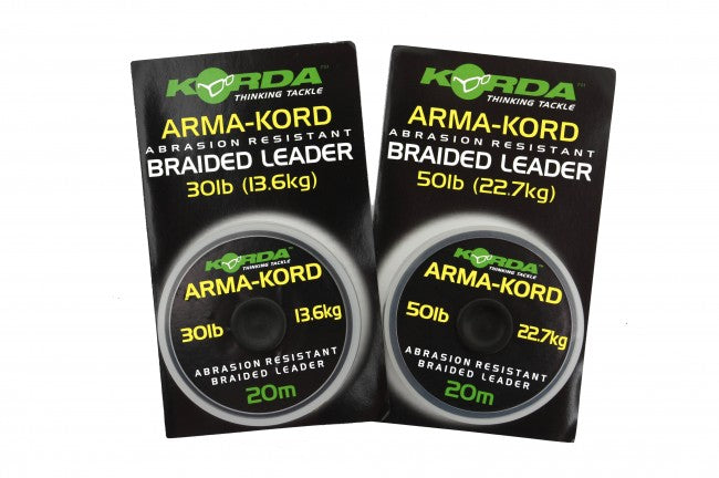 Korda Arma-Kord is een zeer sterk en schuurbestendig materiaal speciaal ontwikkeld als leader of voorslag. Bij het vissen op een mosselbank is het noodzakelijk een zeer stevig materiaal te gebruiken om lijnbreuk te voorkomen. Korda Arma-Kord is leverbaar in 30 en 50 lb. Dus voor elke situatie een goede oplossing.