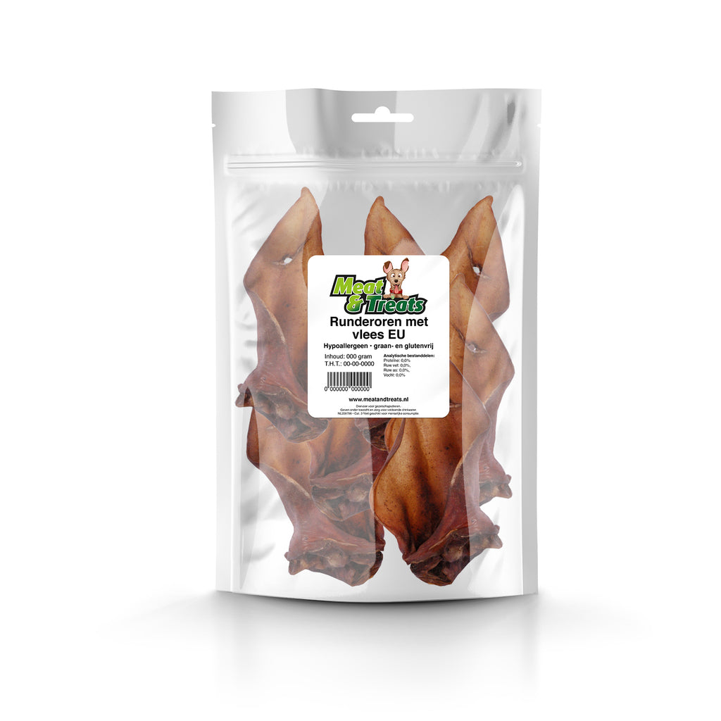 Geef uw hond een smakelijke snack met de gedroogde runderoren met vlees. Heerlijk om op te kauwen waardoor ook het gebit verzorgd wordt.